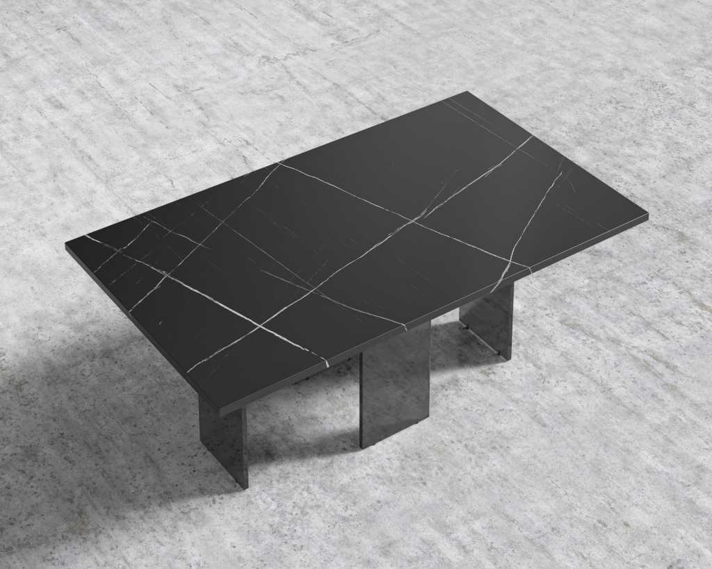 Striking, like the monumental architecture of the Colosseum, the Marbella Dining Table stands out in any dining space. The distinctive marble-like veining of the Black Pietra Ceramic rests upon four smoked grey plexiglass legs giving an overarching feel of timeless sophistication.