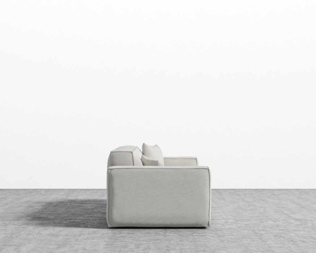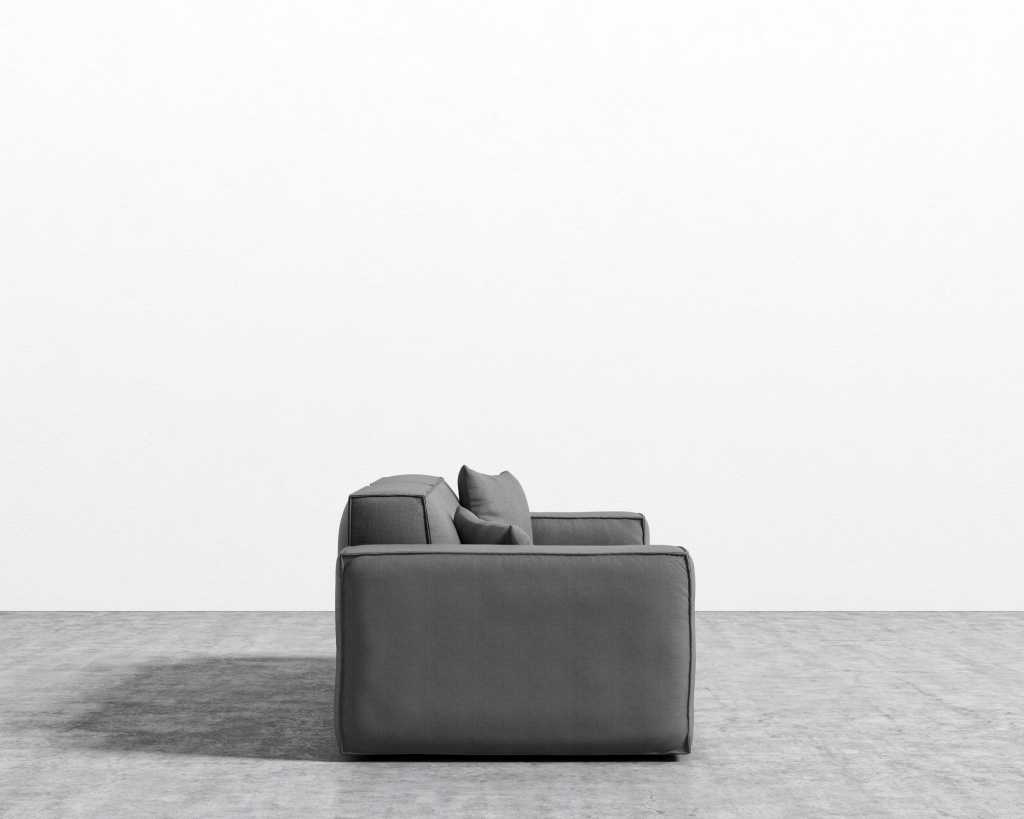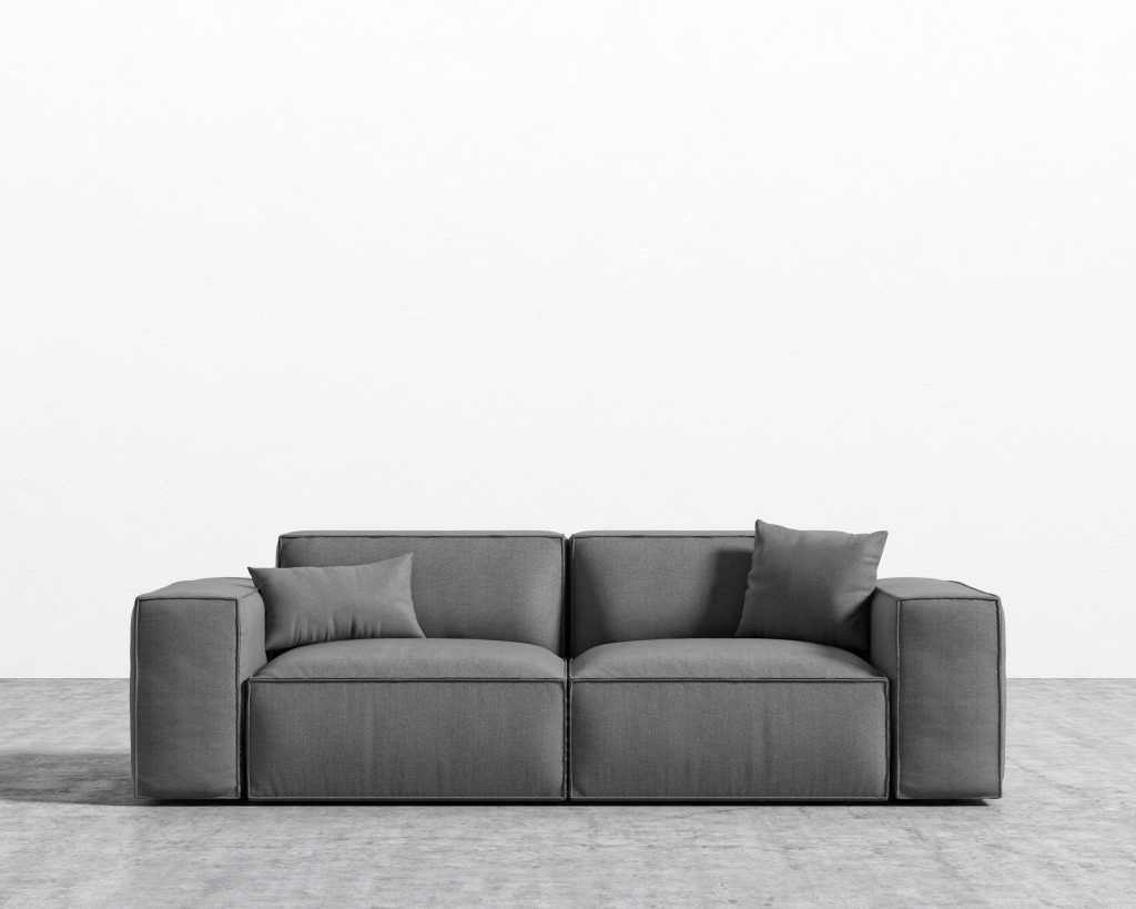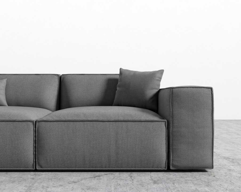 The Porter Sofa is a simple structured sofa with boxy flare and a low-set profile. Square arm rests are made like a side table, while an elevated back rest provides ample lean-back support. High-density foam cushioning is nicely rounded and perfectly firm. Detailed pipe stitching around the edges finishes the modern design, perfect for any and every living space.