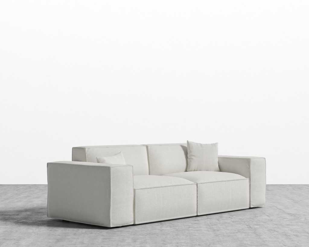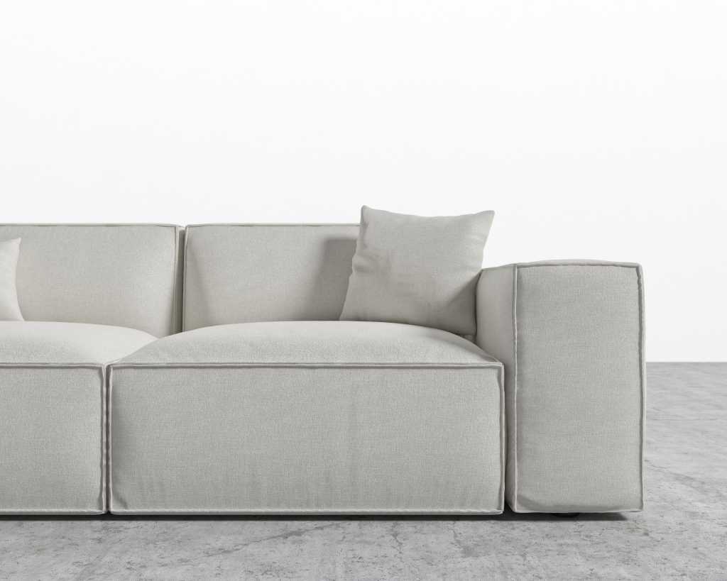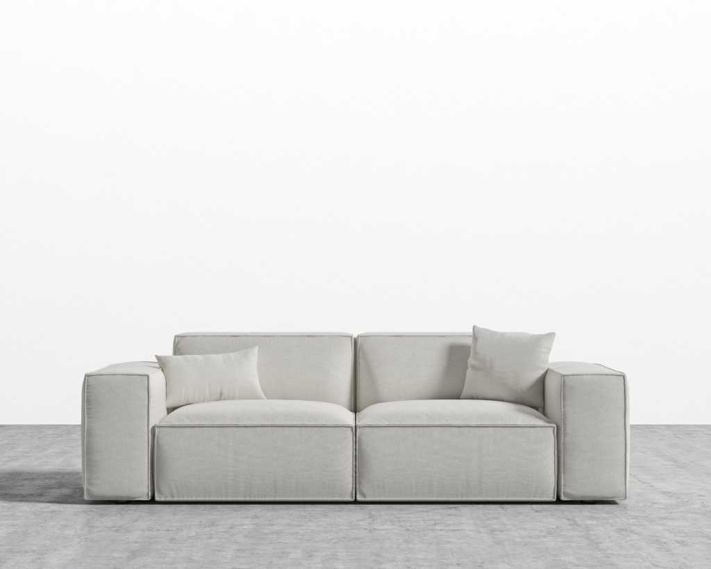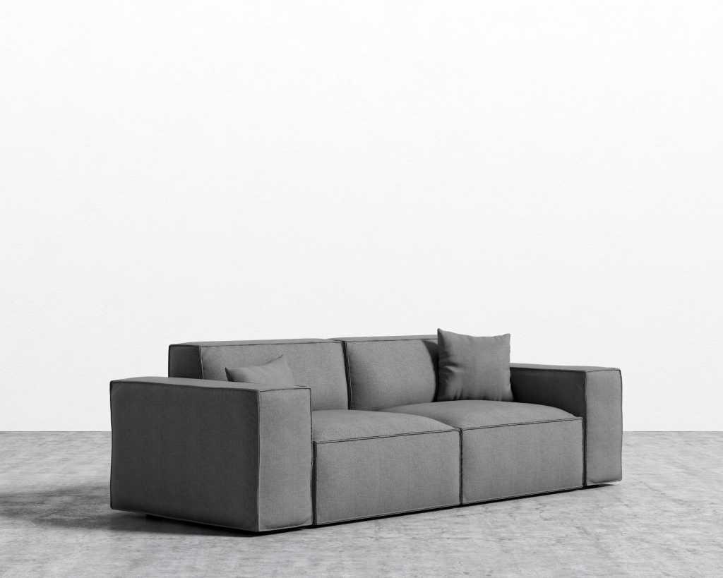 The Porter Sofa is a simple structured sofa with boxy flare and a low-set profile. Square arm rests are made like a side table, while an elevated back rest provides ample lean-back support. High-density foam cushioning is nicely rounded and perfectly firm. Detailed pipe stitching around the edges finishes the modern design, perfect for any and every living space.